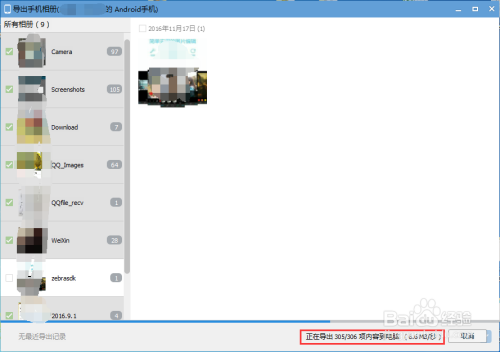 因为相册的图片比较多,还有视频内存大,导出到电脑上需要耐心等待,在以下的图片中可以看到,正在导出的速度。