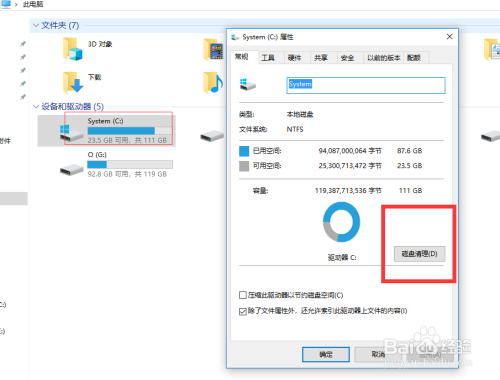 然后,我们再从磁盘方面考虑,可以对系统盘做清理,这样,系统运行速度也会有明显的提示,如下图所示:在系统盘,鼠标右键,打开属性。