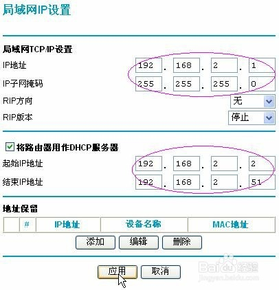 6、待路由器更新设置完成后,再次使用前面介绍的ipconfig/release和ipconfig/renew两个DOS命令来更新电脑的IP信息,若电脑获得了正确的IP(即192.168.2.×),说明路由器的设置已生效,现在可以将其跟ADSL MODEM连接了。最后再进入路由器的基本设置页面,点击“应用”,路由器就进行拨号了。
