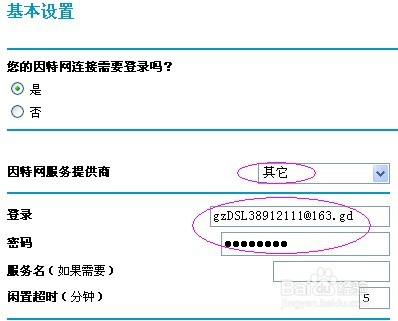 4、然后启动浏览器,在地址栏中输入 http://192.168.1.1/basicsetting.htm 后回车,就进入了路由器的配置界面,默认进入的是基本设置页面,ADSL的家庭用户通常只需在此页设置好ADSL的帐号和密码就行了,如图: