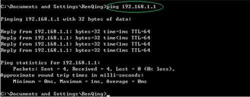1、ADSL MODEM开启了路由功能,且LAN IP地址与路由器的 LAN IP 地址相同,R6400的默认LAN IP是192.168.1.1,许多生产ADSL MODEM的厂家也将此值作为产品的默认LAN IP,用户一旦将两个设备连接到一起就会发生环路,电脑仍能从路由器获得到IP地址,在DOS命令行窗口中使用ipconfig命令可查看获得的IP信息,但无法ping通路由器: