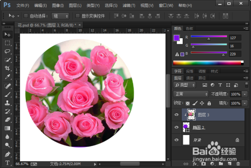 把花朵的图片嵌入大圆的图形中。