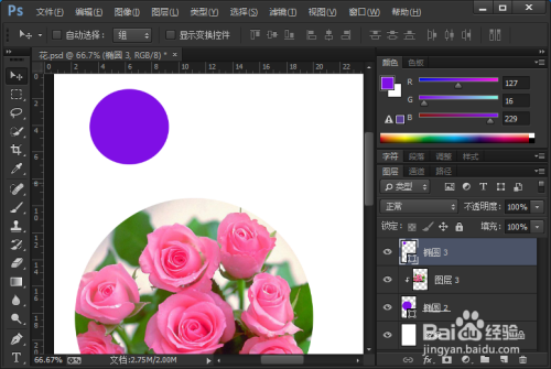 把前景色调整为紫色,点击【椭圆工具】。