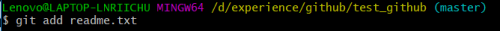 在此之前,我们已经编写过一个readme.txt文件,这个文件存放在已经初始化的git版本库下,内容如下图所示: