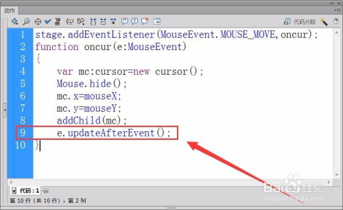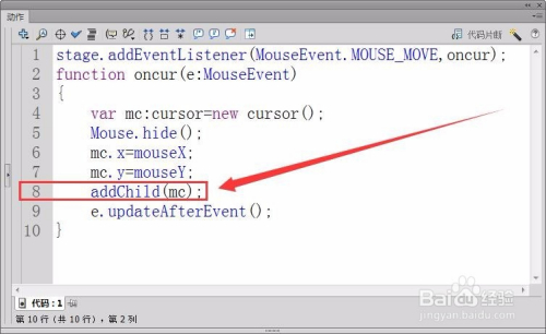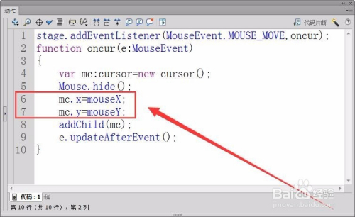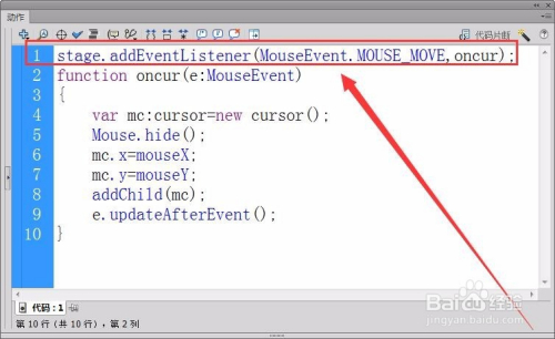 首先,注册舞台的鼠标移动事件的侦听器,控制鼠标的显示。