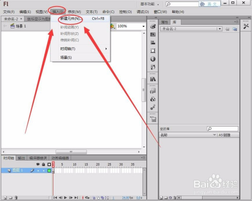 单击“插入”---->“新建元件”,在舞台制作一个影片剪辑元件cursor。
