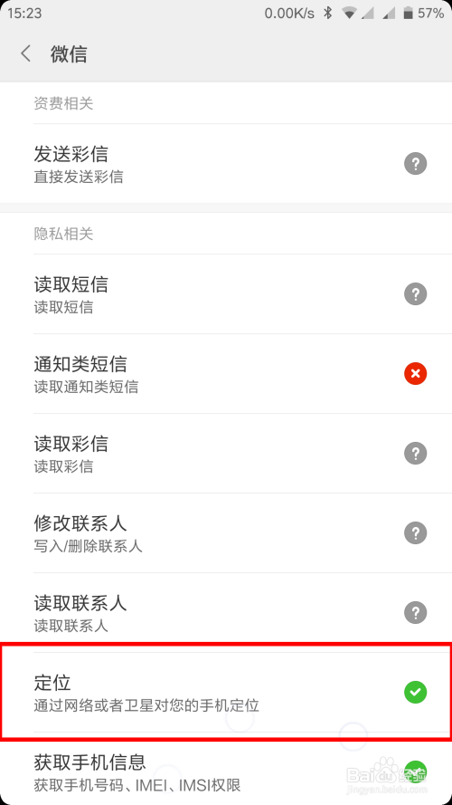 在权限管理中找到【定位】选项,然后打上【√】即可。