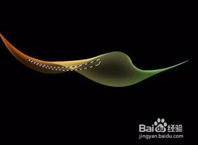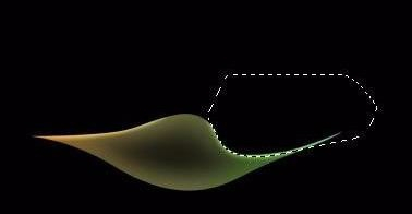 回到底色渐变图层,用钢笔勾出下图所示的选区羽化6个像素后按Ctrl + J 把选区部分的色块复制到新的图层,再把图层不透明度改为:35%