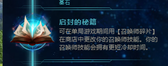 基石‘启封的秘籍’,缩短召唤师技能的冷却时间,并且可以更换,在前期利用较短的召唤师技能保证自己的发育,后期可以视情况更改召唤师技能;
