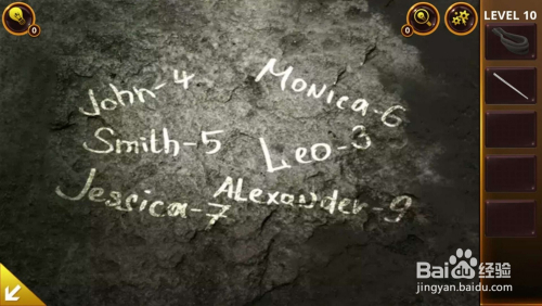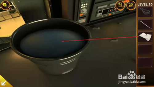 点击水桶,浸湿抹布,用湿抹布擦干净石头上的土,得到线索