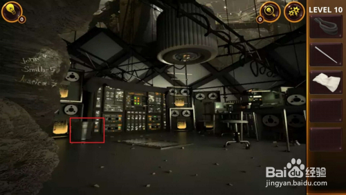 用钥匙打开左边仪器的门,点亮仪器中的按钮,得到一根黑绳