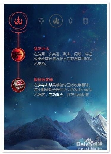 选择“主宰”作为“副系符文”(爆发伤害和近身手段)。在副系符文1中选择“猛然冲击”减少双抗,提高输出;在副系符文2中选择“眼球收集喊器”提高法强,加强输出。