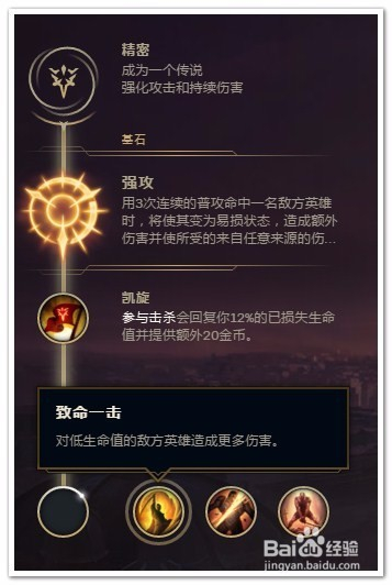 选择“精密”作为“主系符文”(强化攻击和持续伤害)。