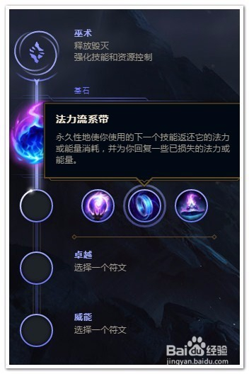 选择“巫术”作为“主系符文”(强化技能和资源控制)。
