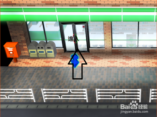 出去后往下走看图1有旅馆然后在往下看图2进便利店