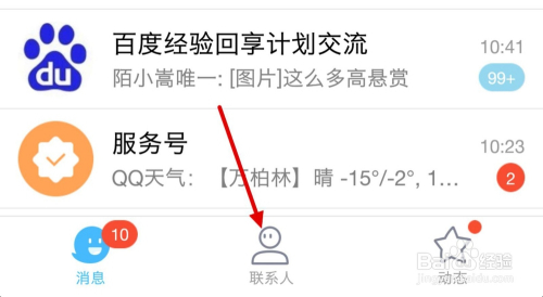 我们要手机上打开QQ,点击底部导航中的“联系人”。