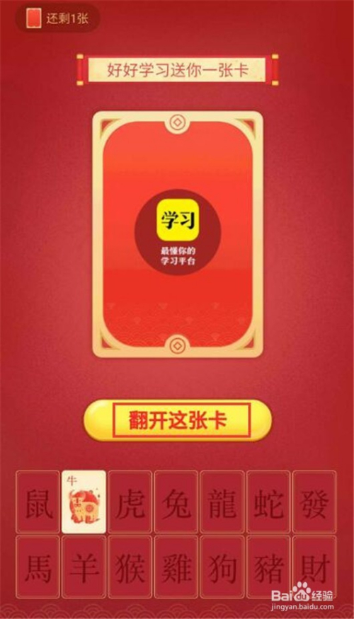 收到十二生肖的牛,再继续抽一张卡,再次点击“翻开这张卡”