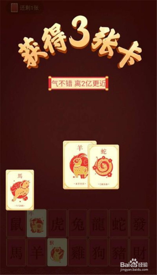同时获得三张十二生肖的卡,“蛇”“马”“羊”,系统还赠送一张卡片,点击“翻开这张卡”。