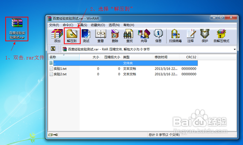双击需要打开的.rar格式文件,这时候就弹出一个操作框,如下图。选择菜单栏里的“解压到”