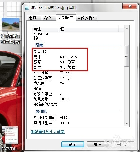 我有一副图片,我们先来看看,压缩之前的大小和尺寸吧。