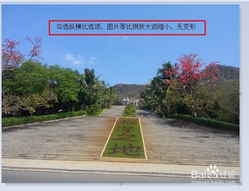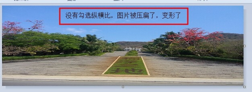 前面两个步骤提到了“保持纵横比”,这个选项如果打钩,垂直和水平是同等放大和缩小的,这样原来的图片就不会变形。否则,假如你不勾选此选项,水平和垂直的值虽然可以任意更改,但是会造成图片被拉伸了或者压扁了,就失真了。请看下面的对比图。