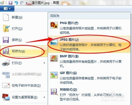 修改完以后,要点击另存为,一般保存为jpg格式。切记不要直接保存,因为你图片已经缩小了,像素已经降低了,如果你直接保存,原始图片的像素变小了,假如你发现图片改的太小了,想要再放大,由于像素变小了,你再放大图片已经不清晰了,所以请用另存为存储图片。