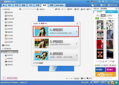 在弹出的抠图方式选择对话框中选择“自动扣图”,如图所示。