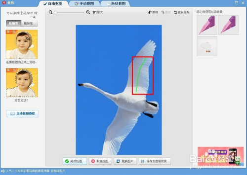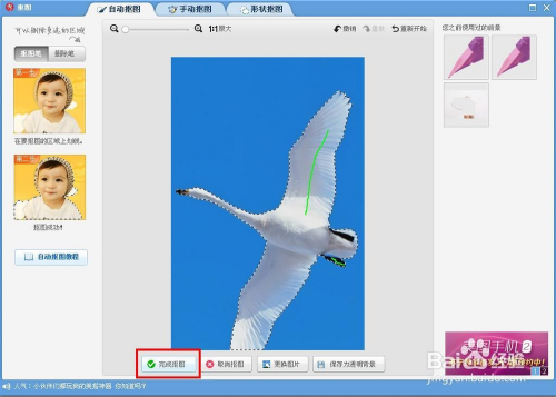等所有人物都选定后,在下端按“完成抠图”按钮,如图所示。