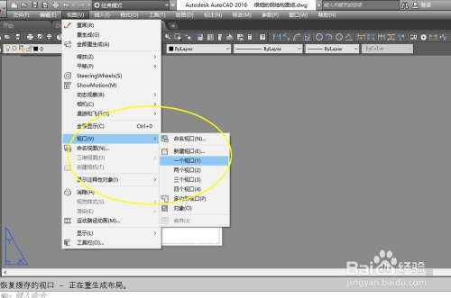 视口建立,视图选项中视口,我们选择一个视口,然后在绘图区绘制矩形,绘制的矩形便是一个新视口。