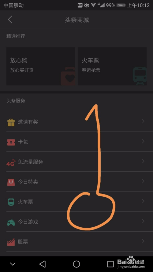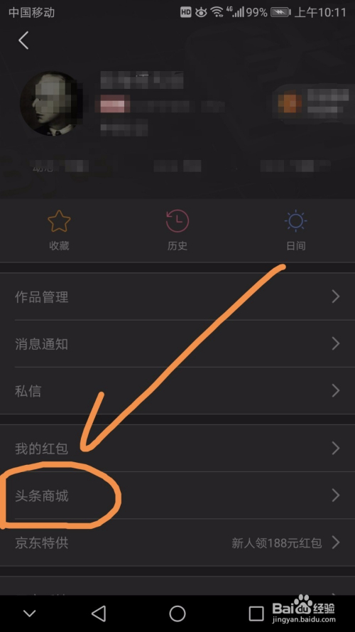 在之后的界面找到箭头指向的头条商城标志,点按进入,如下图所示。