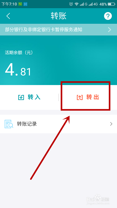 第二部从网商银行转到银行卡:点击“转出”