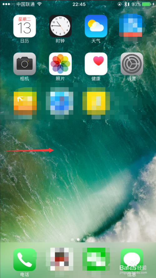 如图示,首先解锁苹果手机后,往右滑动桌面进入卡片页