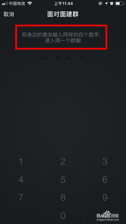 这时,这个微信群就建成了,要入群的朋友需要通过这个方法输入同样的四个数字,就能进入这个微信群。