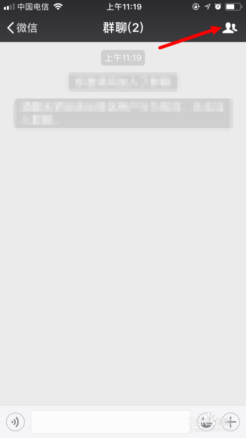 然后,我们要对这个微信群进行一些基本的设置。点下图红色箭头所指的标志。