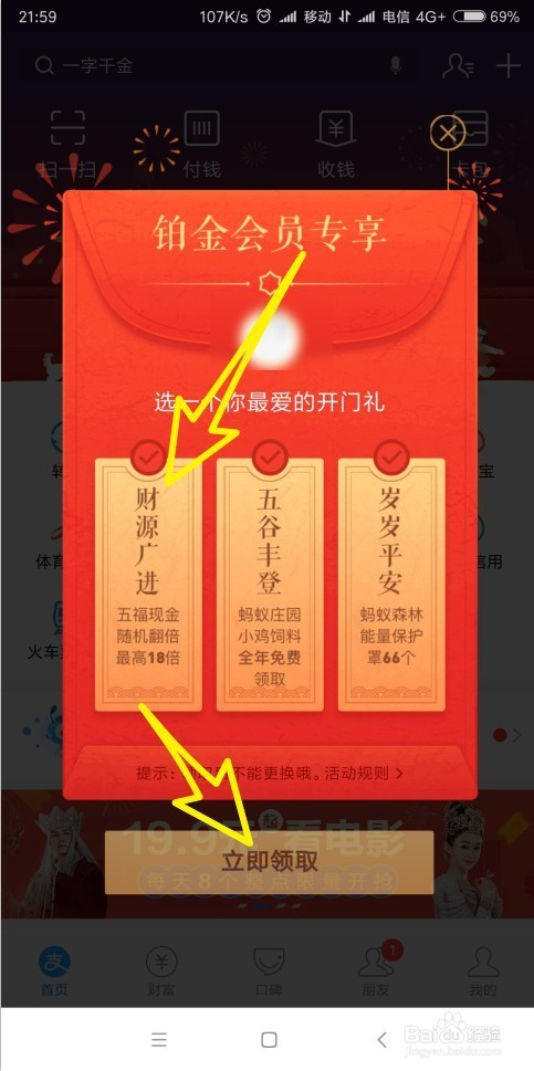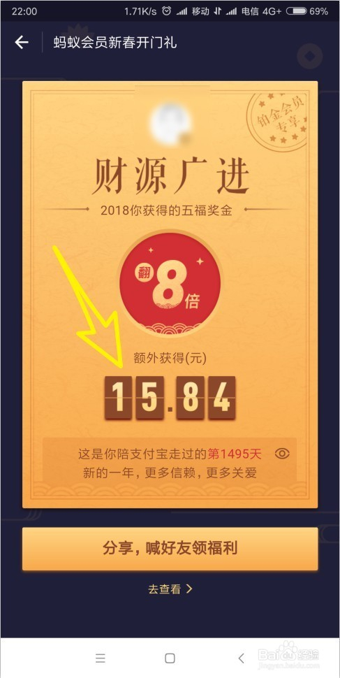 接着可以看到我们获得的红包了,前提是我们是铂金会员,如下图所示,