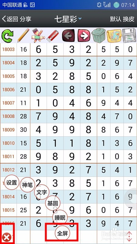 现在,我们就可以全屏浏览且可以在奖纸上画奖,找规律了。