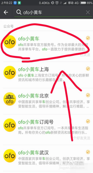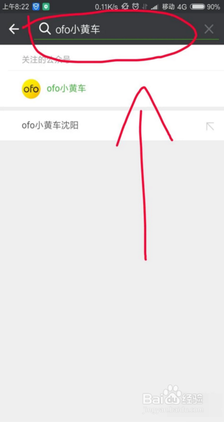 在搜索一栏中输入“OFO小黄车”