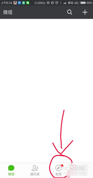 打开微信后,找到【发现】,点击打开