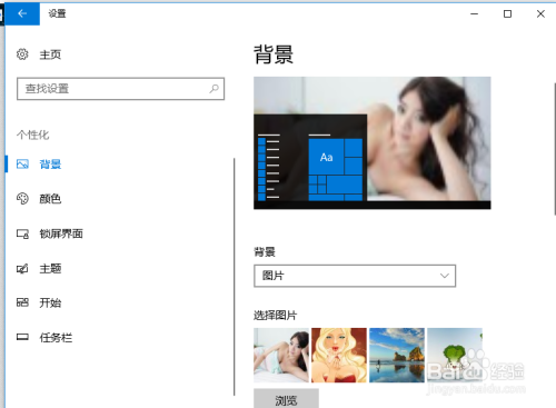 进入个性化设置界面,选择“背景”,在右边选择图片,如图所示