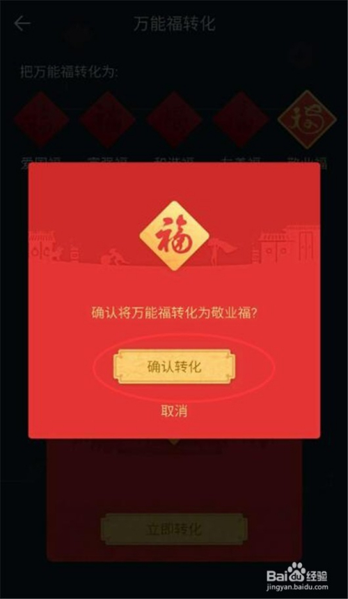 最后一步,用万能福去转化为敬业福,点击”确认转化“