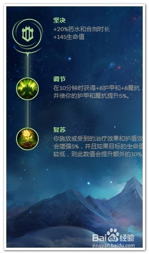 选择“坚决”作为“副系符文”(耐久和控制)。在副系符文1中选择“调节”,增加双抗;在副系符文2中选择“复苏”,提高索拉卡的治疗效果。