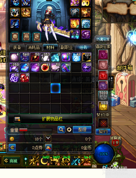 哈尔特山地下城:黑钻角色+黄金翻牌+85级称号。号上金币一千万等待商人加白列,留下五千无色放技能,其它各色小晶体,材料,金币,全部放回仓库。一个角色刷完剩余4点疲劳,蓝色装备分解,紫色装备和白色装备出售商店。