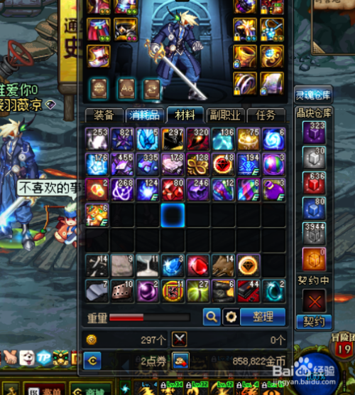 魔界血色防线:黑钻角色+黄金翻牌+85级称号。号上只留留5000无色小晶体,其它各色小晶体,材料,金币,清空放回仓库。一个角色疲劳刷完,蓝色装备分解,紫色装备和白色装备出售商店,获得:527572金币。