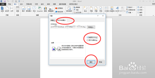 弹出对话框,选择由文件创建、浏览选择刚才保存到桌面的CAD图形,选择好后,单击确认。(这儿选中链接到文件)
