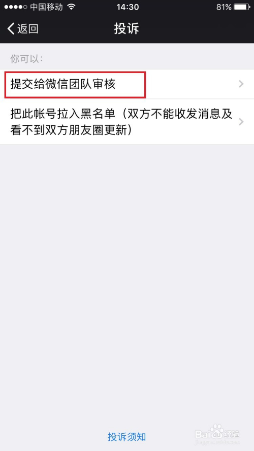 接着会进入到下一步的设置窗口,这里设置提交给微信团队审核,这样才算是投诉举报。