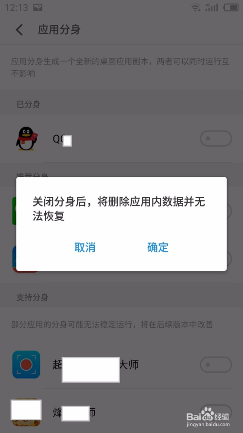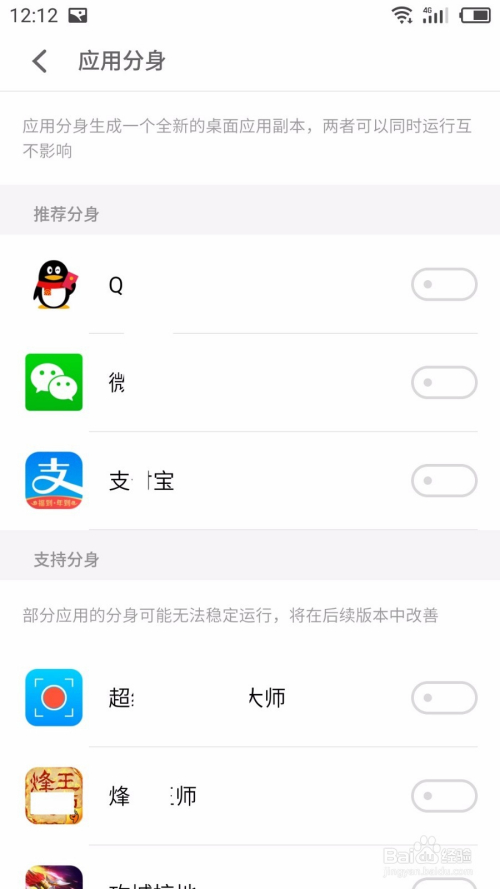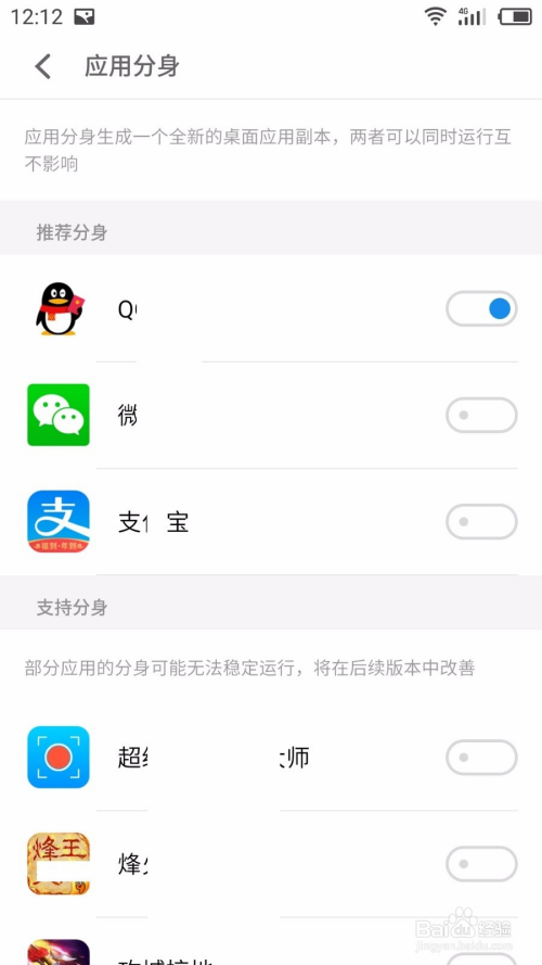 在列表里面找出Q等软件,然后打开后面的按钮便可开启分身了。