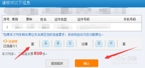 如果余票还比较多,你还可以选择你想要坐的位置,如图所示,选好后点击确认即可。