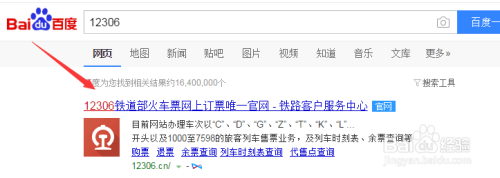 首先点开百度进行搜索12306,进入12306的官网,如图所示。