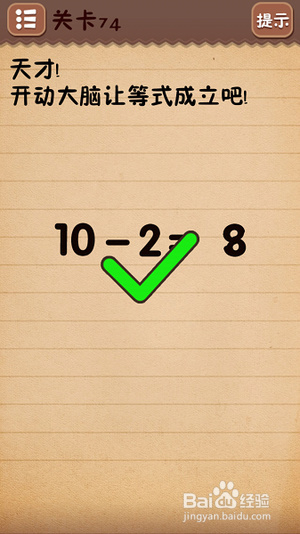 第七十一关点击题目中的“狗”字;第七十二关把纸拖到钱上面;第七十三关同时点击你妈和老婆;第七十四关把等式右边的3旋转得到8;第七十五关找出十处不同(看图);