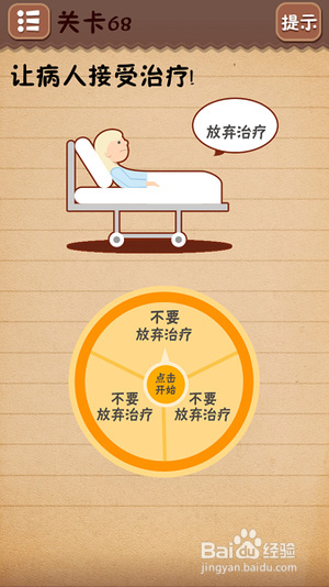 第六十六关点击盘子即可;第六十七关依次点击小动物、五边形、棱形、星形,注意不要点击穿着猴子衣服的小孩子;第六十八关把上方的“不要”二字拖到转盘中的“放弃治疗”上方;第六十九关长按巨石然后拖走巨石,点击移走巨石后看到的粑粑;第七十关找出十处不同(看图);